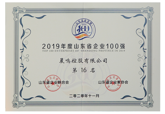 2013/10 山東省企業聯合會、山東省企業家協會和山東省工業經濟聯合會發布了2013山東企業百強榜單,公司位列第16位,較去年排名上升了13位。