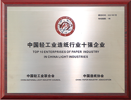 2012/4 在兗州召開的山東省造紙行業協會五屆三次會員代表大會暨全省造紙行業會議上,公布了2011年度山東造紙行業“十強企業”名單,我公司位列榜首。