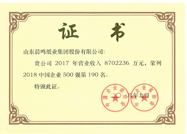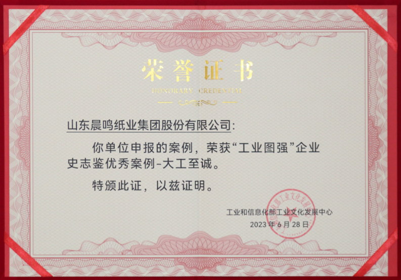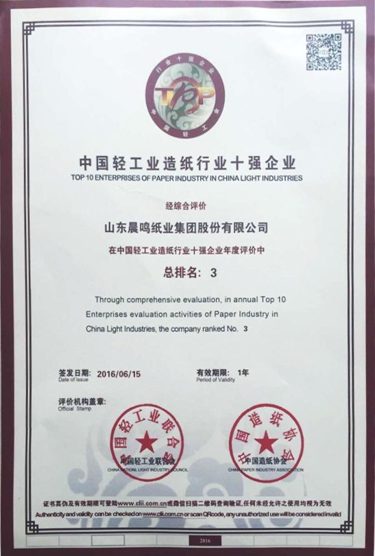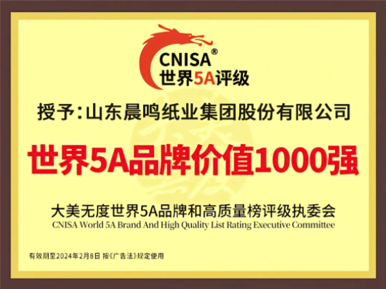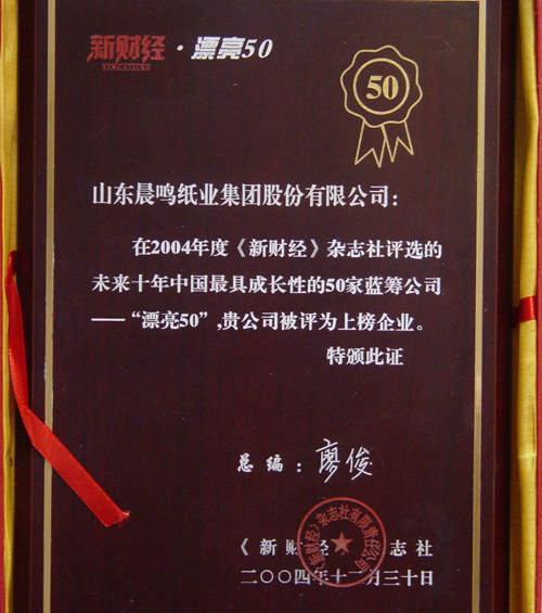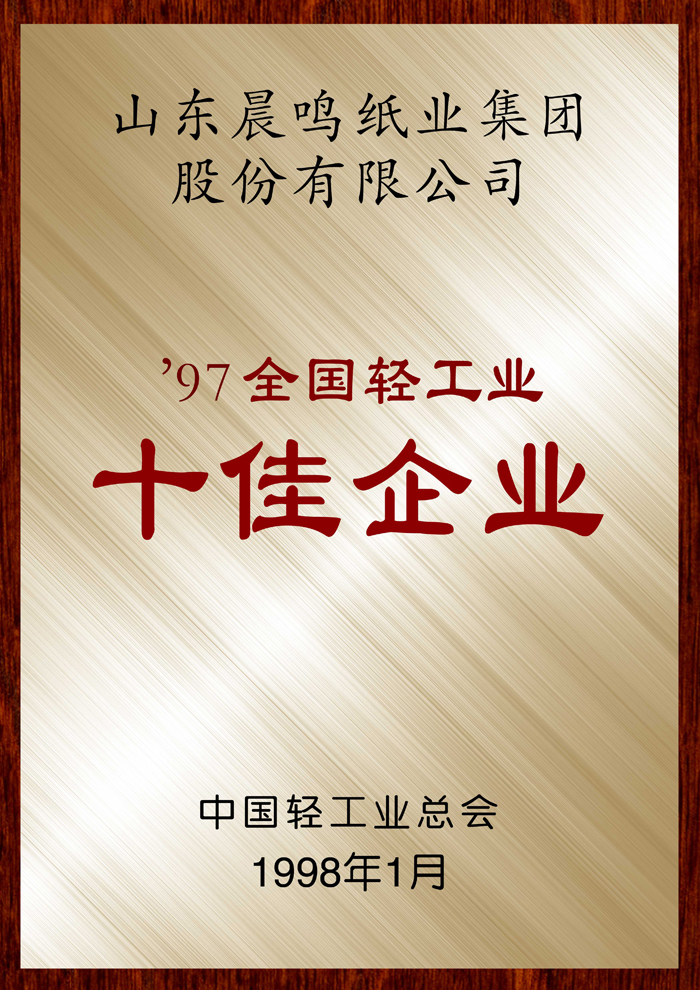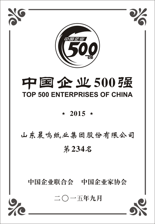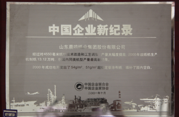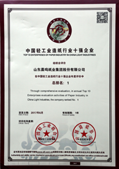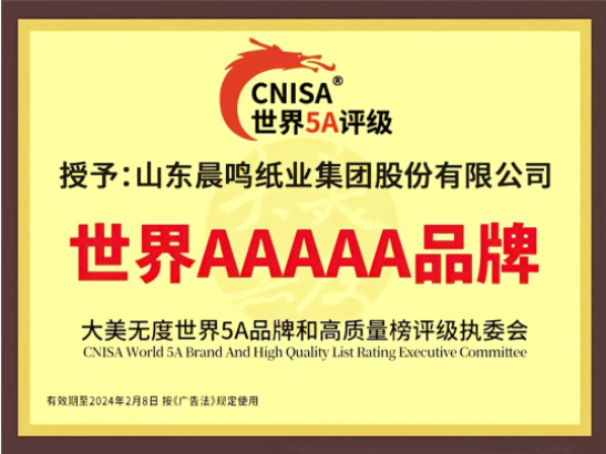 半個多世紀的探索和發展,讓晨鳴集團榮譽滿冠。晨鳴先后榮獲中國企業500強、中國制造業500強、輕工業全國十佳企業、中國出口名牌、全國五一勞動獎狀、中國企業管理杰出貢獻獎、全國生態文明建設十大新聞人物、全國精神文明建設先進單位、中國造紙工業環境友好企業、中國企業集團納稅五百強、中國工業行業排頭兵企業、全國造紙行業勞動關系和諧企業、山東省循環經濟示范單位、低碳山東標桿企業等多項榮譽稱號。