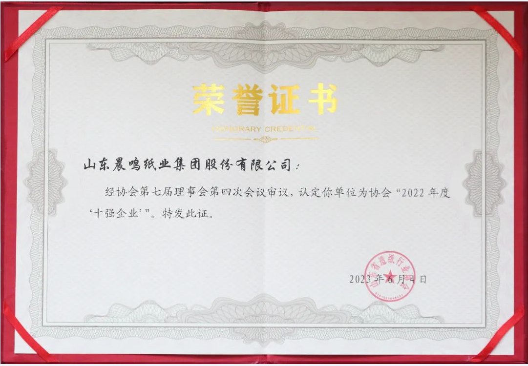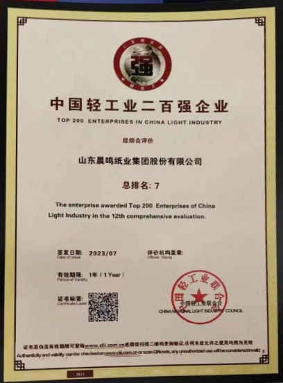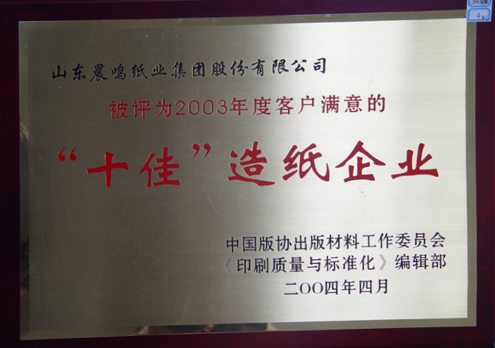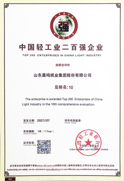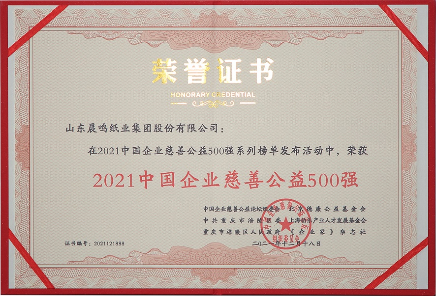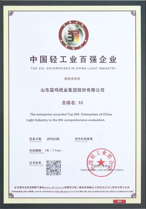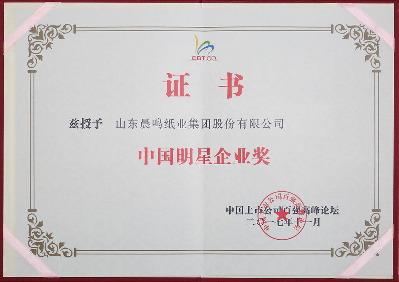 半個多世紀的探索和發展,讓晨鳴集團榮譽滿冠。晨鳴先后榮獲中國企業500強、中國制造業500強、輕工業全國十佳企業、中國出口名牌、全國五一勞動獎狀、中國企業管理杰出貢獻獎、全國生態文明建設十大新聞人物、全國精神文明建設先進單位、中國造紙工業環境友好企業、中國企業集團納稅五百強、中國工業行業排頭兵企業、全國造紙行業勞動關系和諧企業、山東省循環經濟示范單位、低碳山東標桿企業等多項榮譽稱號。